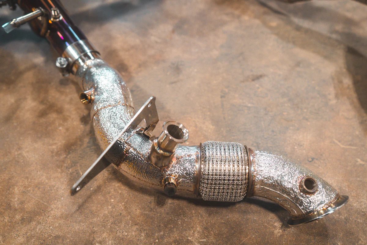 • 3-Inch Free-Flow Front Pipes reveal the turbo whine and roar with a deep sound.