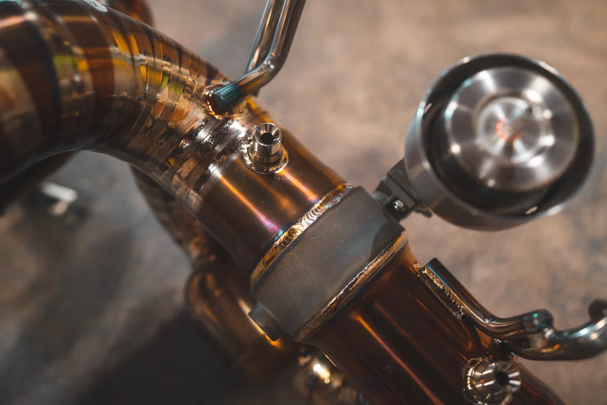 • Blue-Burnt Grade 5 Titanium: lightweight, heat-resistant, and its outlets look stunning.